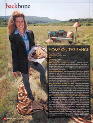 Who needs a designer? “Just about everyone could use the input of a designer to help them discover what they could really benefit from in terms of a formal overview of their space and their own tastes. I elicit from people what's inside of them already and draw on that [to] help illuminate what their environment can be for them. And I try to elevate their expectations and their lives by creating an environment that will manifest all of their hopes and dreams.”